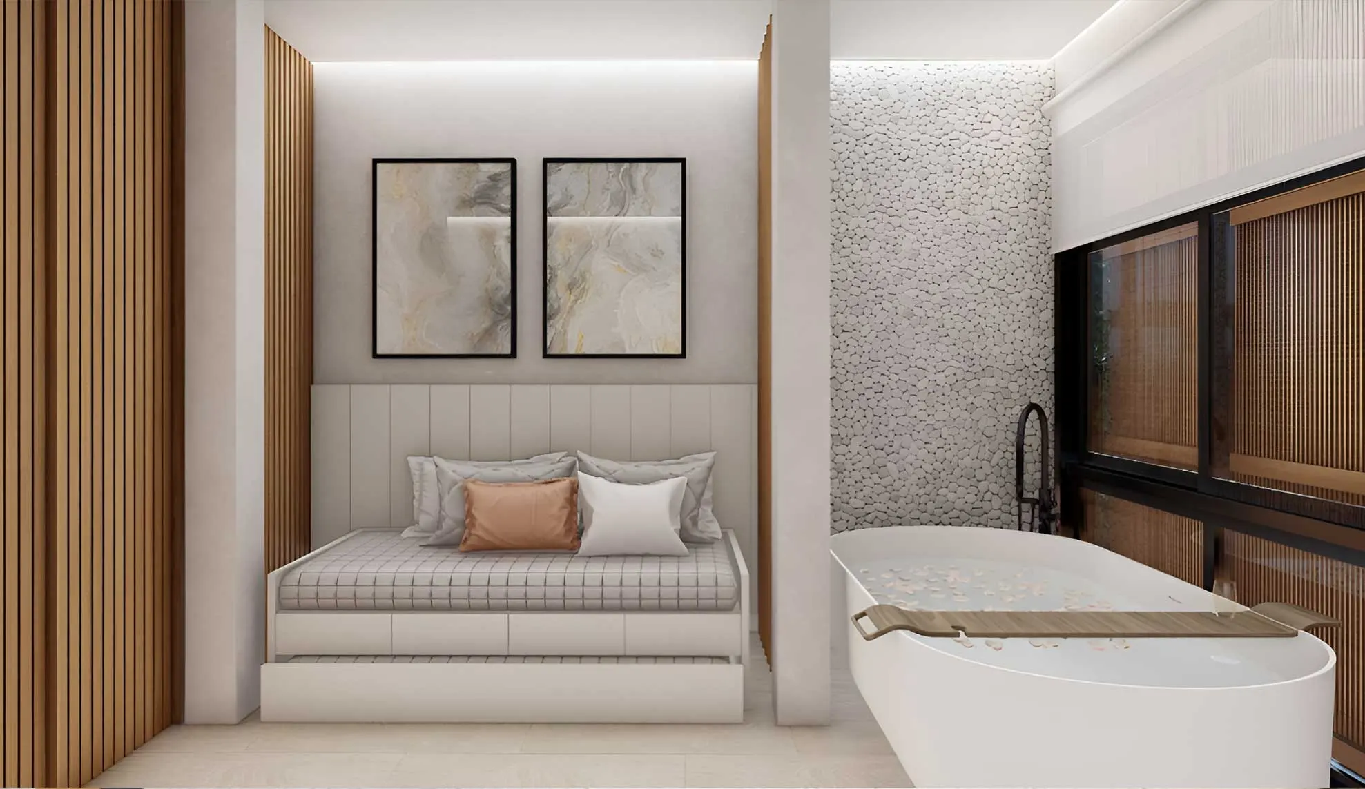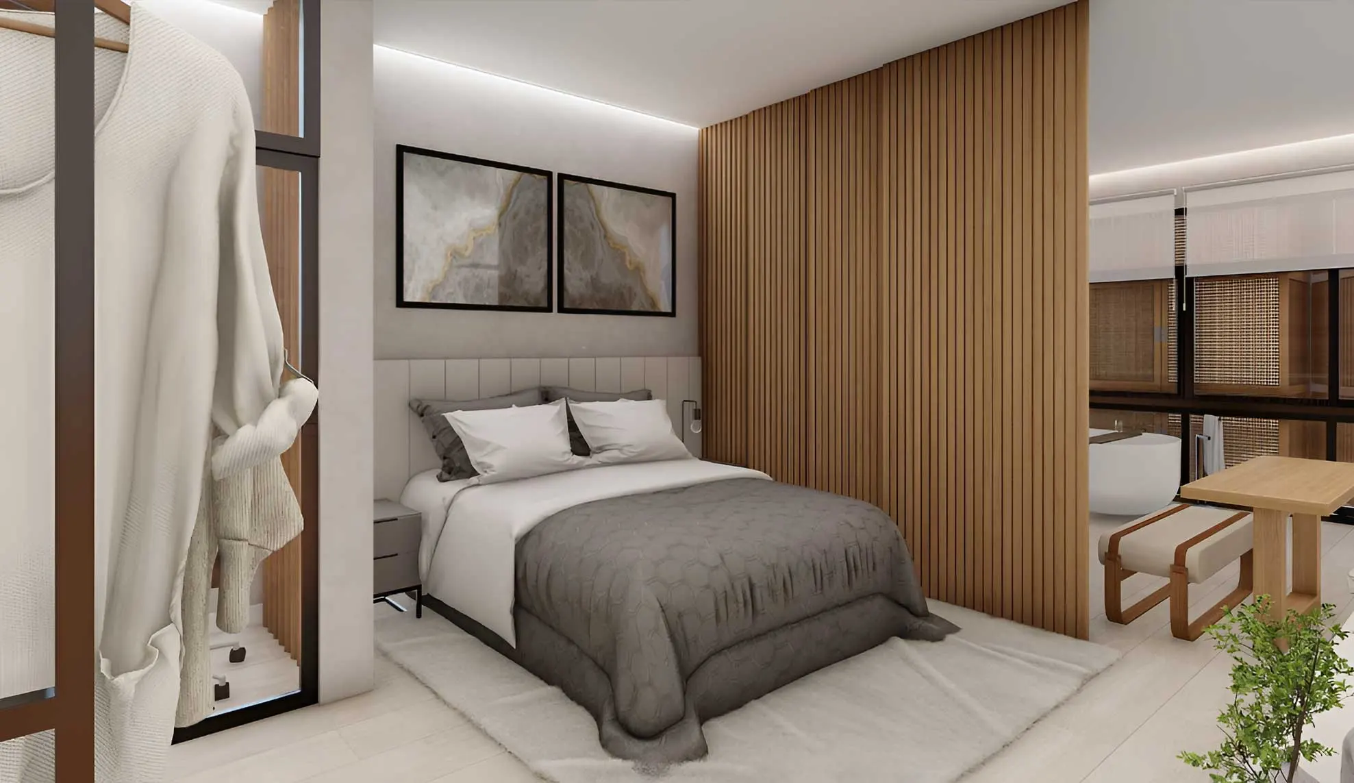 Luzes que ajustam o tom perfeito para relaxar, música suave que envolve cada espaço, cortinas que revelam paisagens ao simples toque, e uma temperatura acolhedora esperando por você. Tudo pensado para criar a atmosfera ideal para o que você deseja sentir, esteja você chegando para descansar ou celebrar.