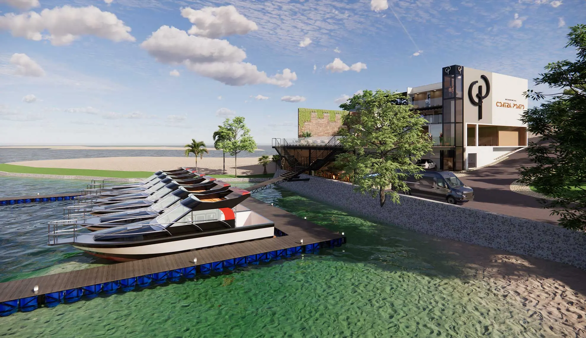 O Residencial Contra Ponto oferece uma infraestrutura de alto padrão, com apartamentos modernos e tecnológicos, segurança 24h, lazer completo, incluindo espaço gourmet, sala de reunião e estrutura náutica exclusiva.