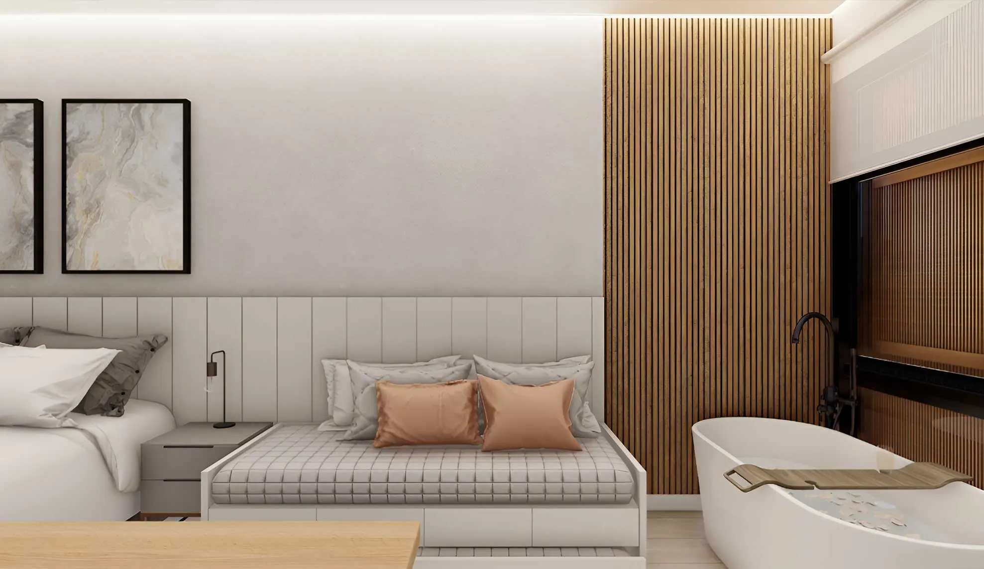 Luzes que ajustam o tom perfeito para relaxar, música suave que envolve cada espaço, cortinas que revelam paisagens ao simples toque, e uma temperatura acolhedora esperando por você. Tudo pensado para criar a atmosfera ideal para o que você deseja sentir, esteja você chegando para descansar ou celebrar.